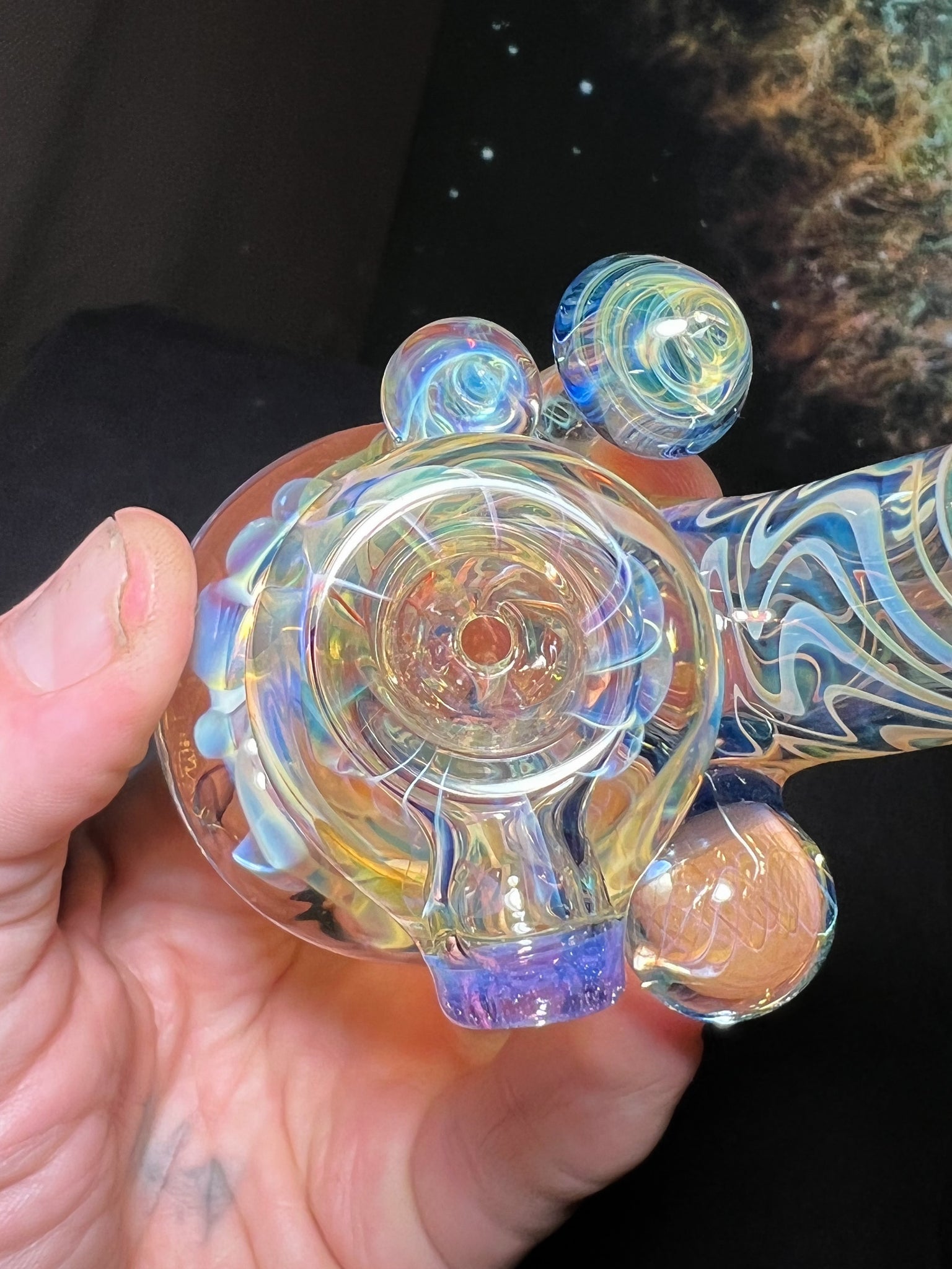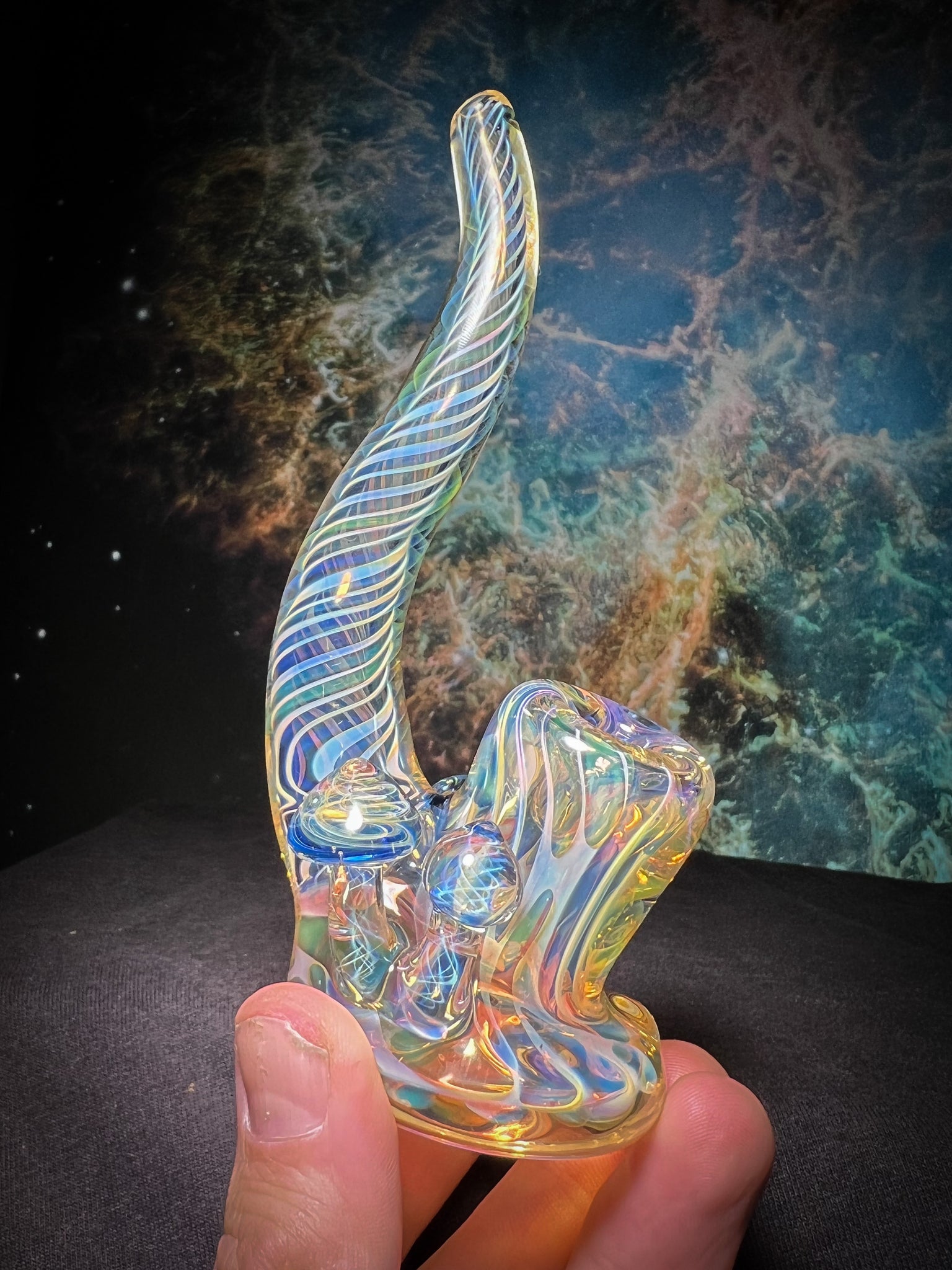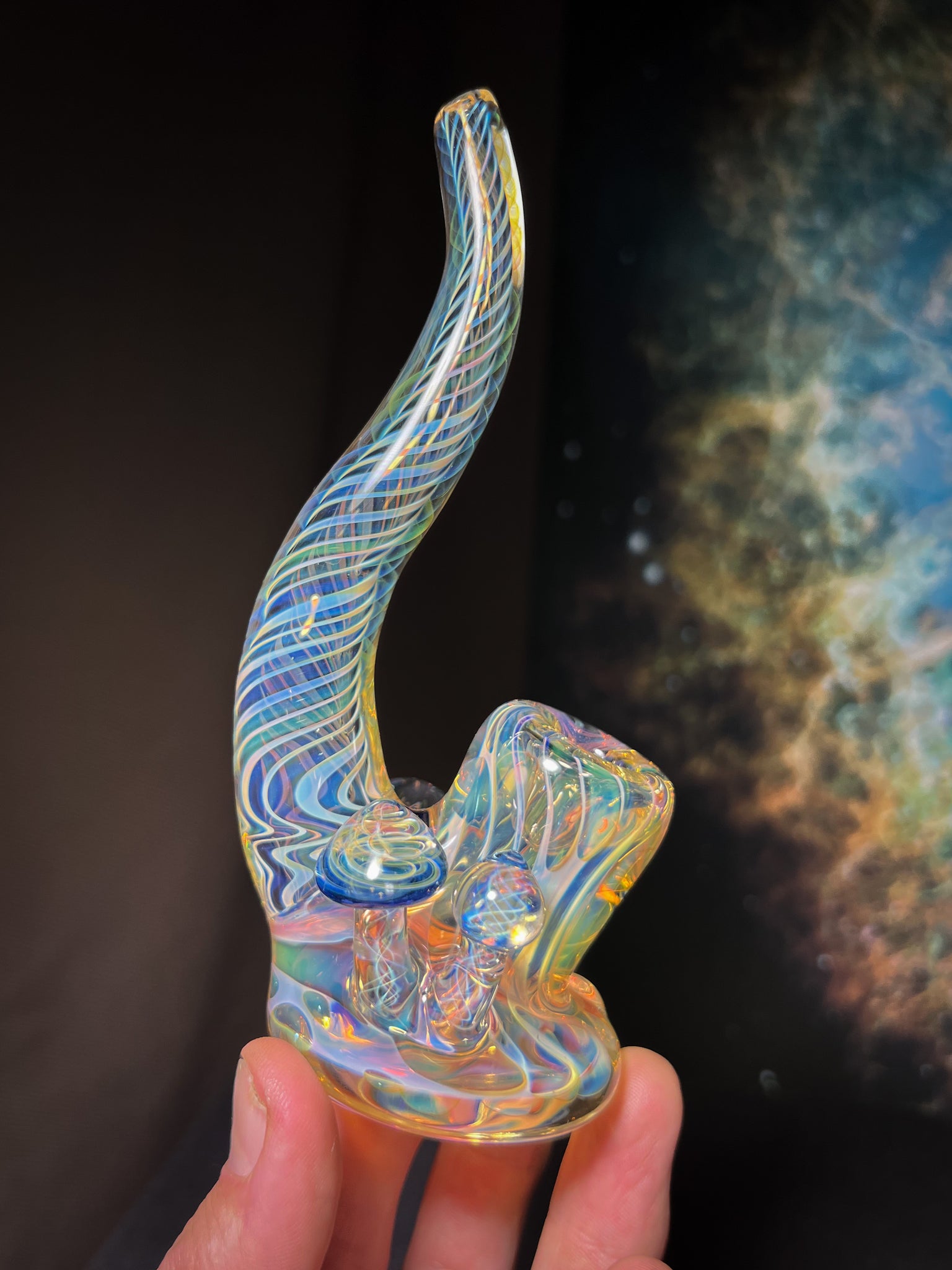 Gold and silver fume squat lock with 2 Etheric mushrooms